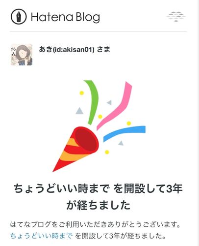 本日2度目の更新です。 先日、はてなからのメールで気づきました。 すっかり忘れていましたが、お蔭さまで、当ブログ「ちょうどいい時まで」は、3年が経過し4年目に突入! この3年間をちょこっと振り返り、自分の記録にしたいと思います。
